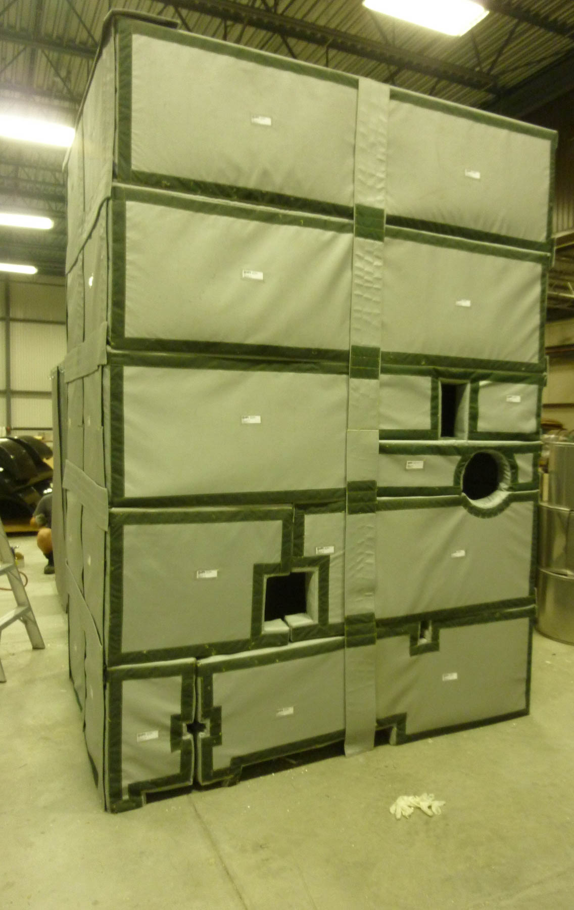 La couverture acoustique est fabriquée de matériaux flexibles. Elle est facilement mise en place soit en étant fixée sur une structure indépendante ou sur la pièce qui nécessite un isolant acoustique. Elle peut être installée à l’intérieur comme à l’extérieur. Étant flexible et de poids léger, elle peut facilement être déplacée au besoin. Divers systèmes d’attaches ont été développés afin de faciliter son utilisation.